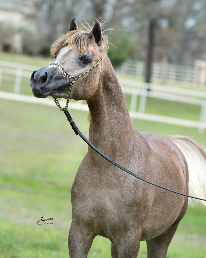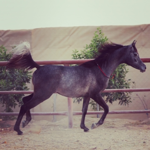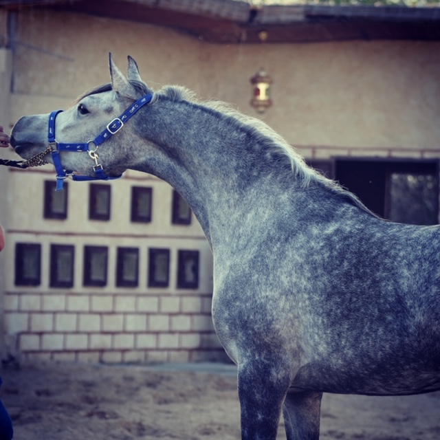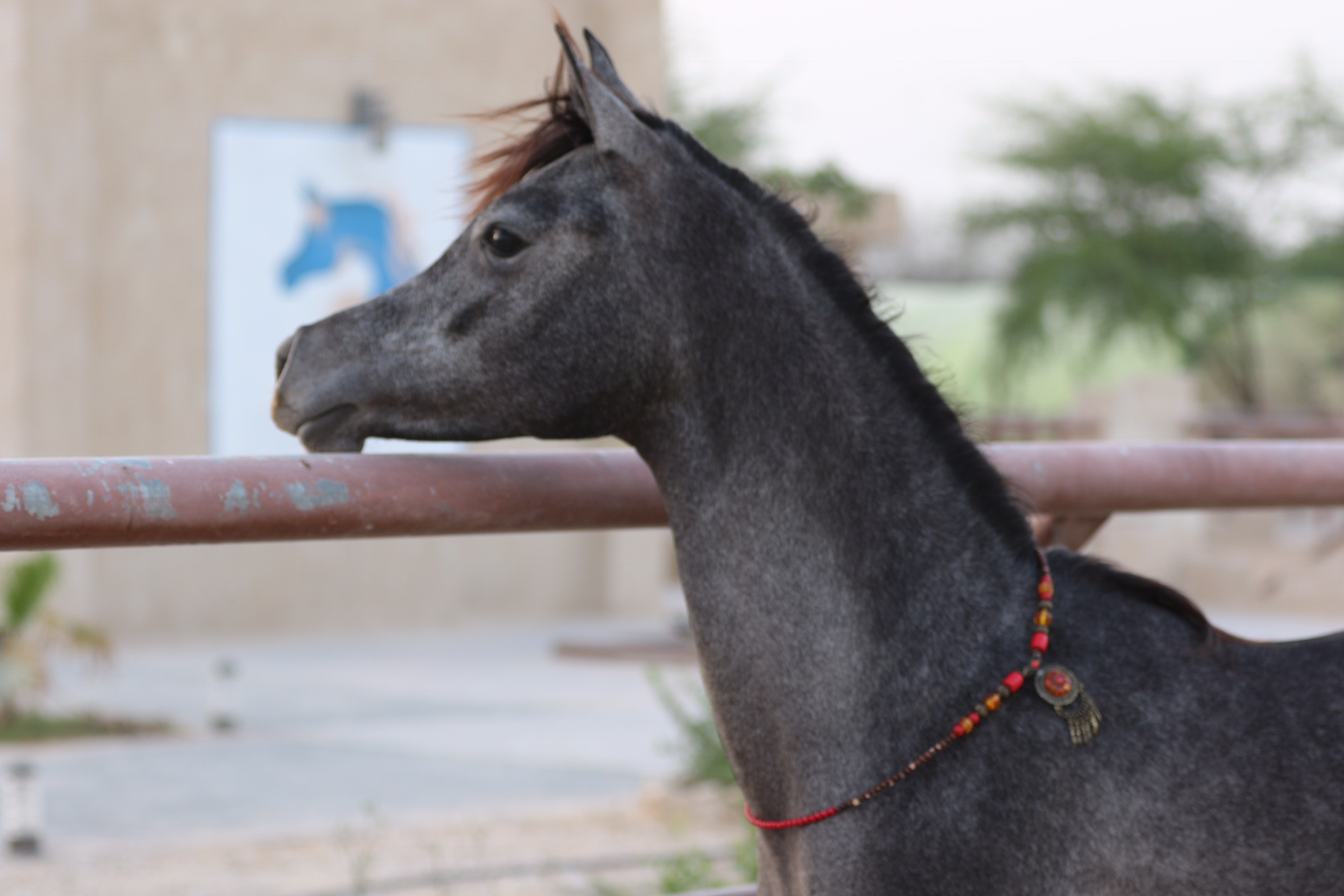Noor Jathab was born truly gorgeous and black but is no longer and is a beautiful steal gray now. Noor Jathab is a big tall filly with great substance and has a beautiful dished face.We believe she has the entire package as she has the beauty and the breeding to be a fantastic straight Egyptian mare.