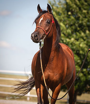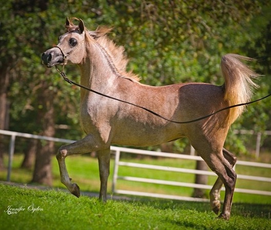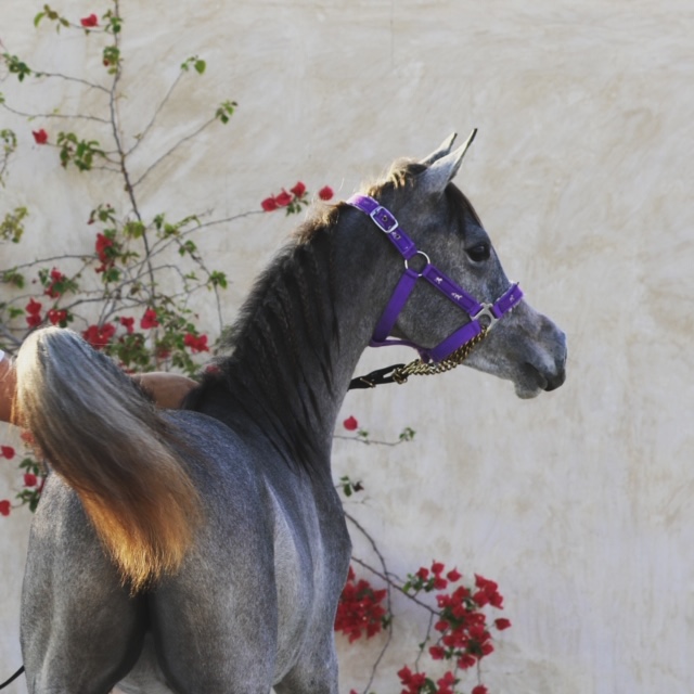 Gatsbys Grace is a very pretty mare with a very smooth body and topline and has correct feet and legs and has a highly sought after tail female line she is El Dahma and Al Khamsa. She is a great mother, who produces beautiful foals and has a wonderful personality and very easy to breed.